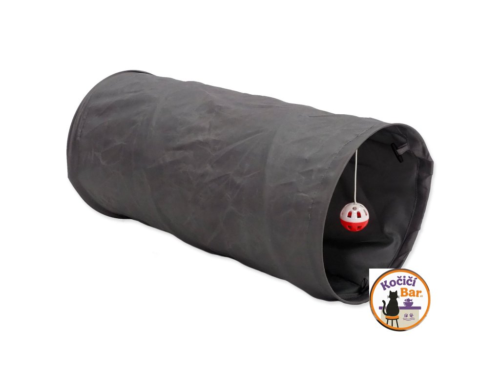 Tunel pro kočky s hračkou.